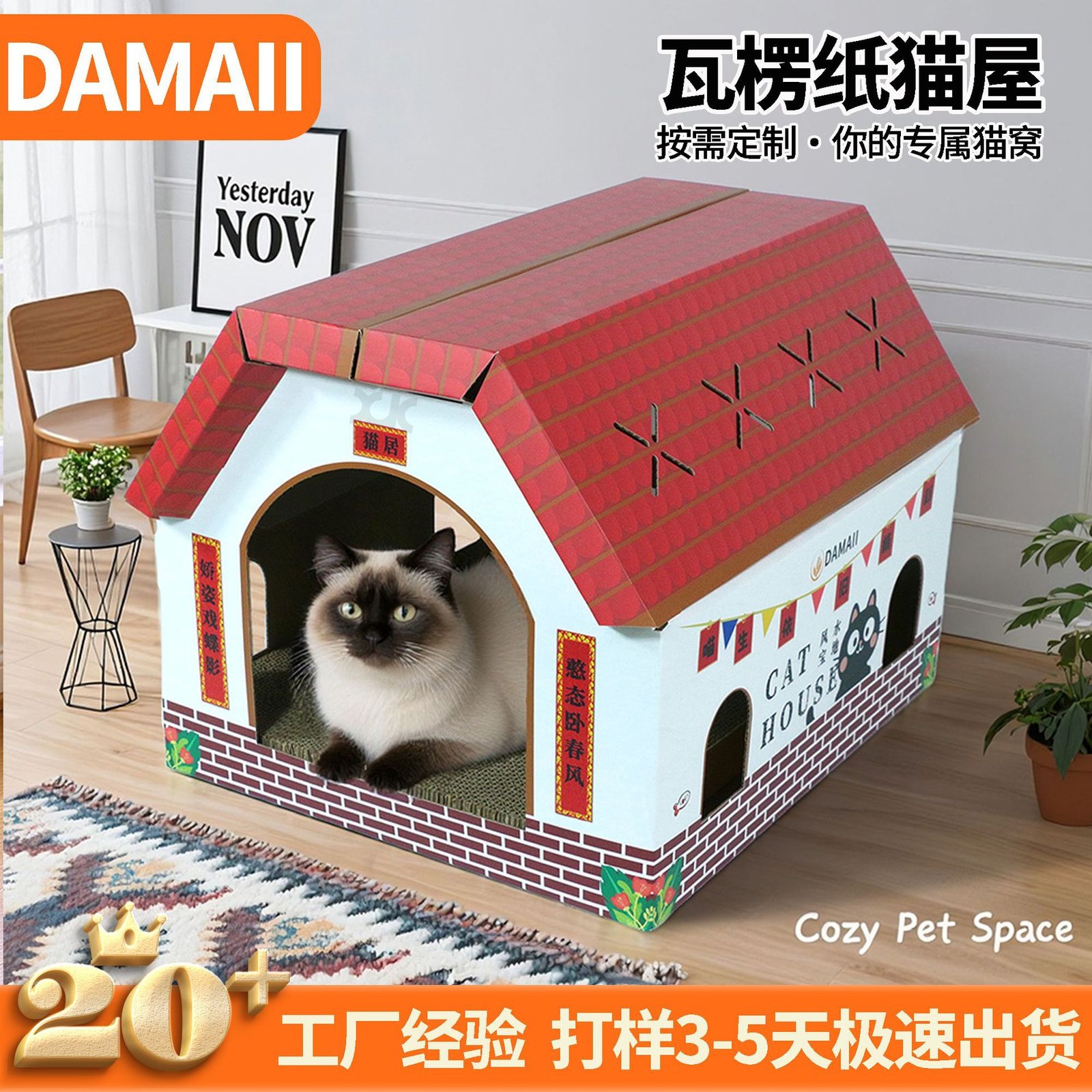 Pet Cat Nest Carton Custom Made Extra Hard Cat Claw House Carton House Corrugated Paper Cute Cat Nest Custom Made