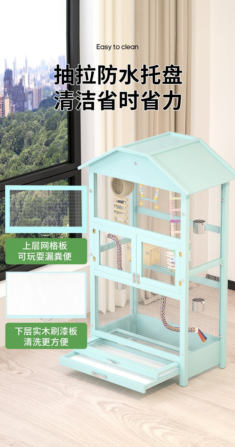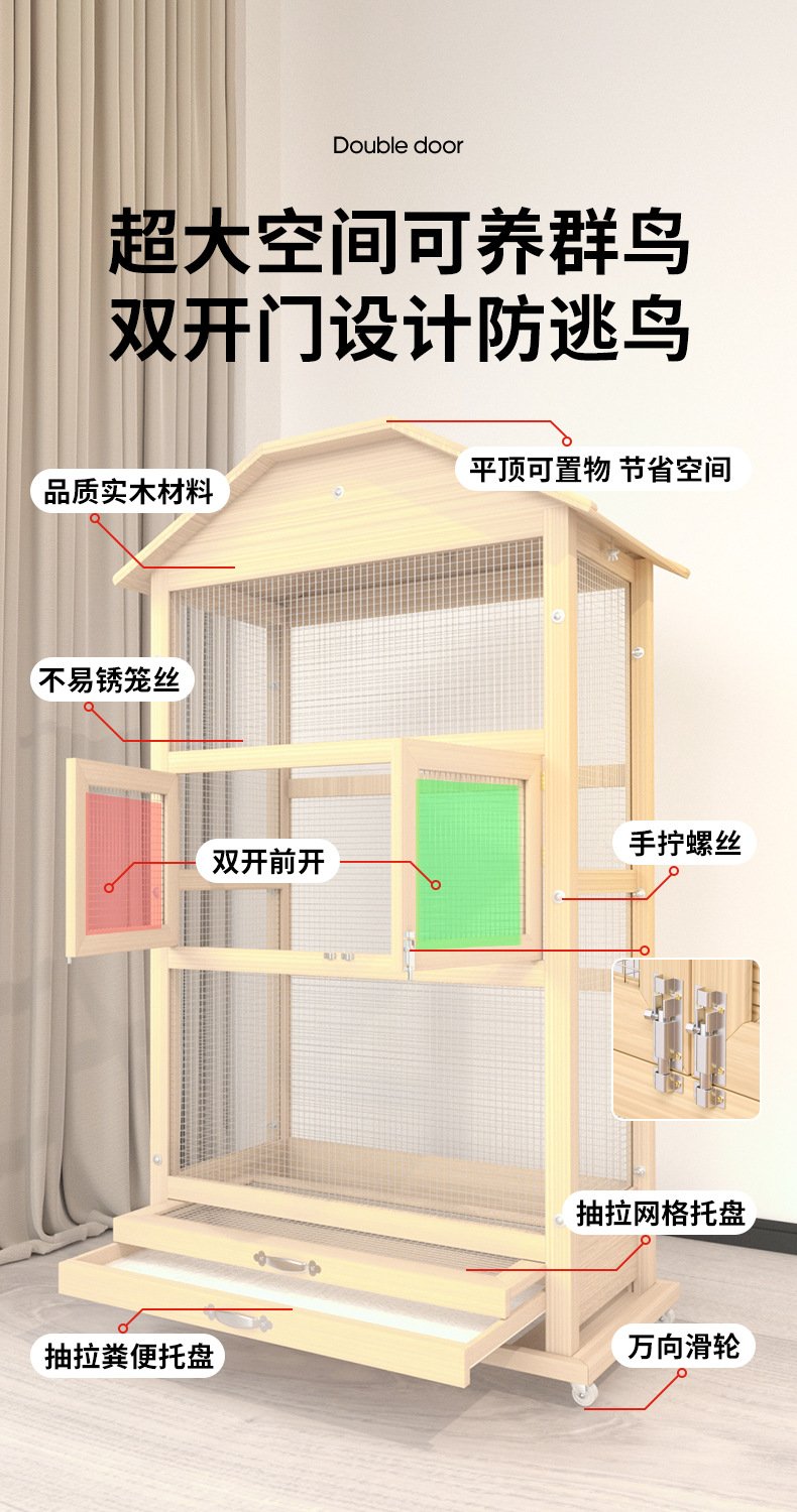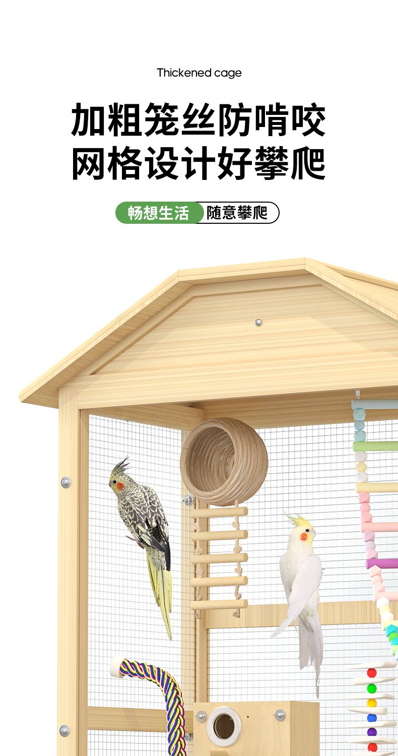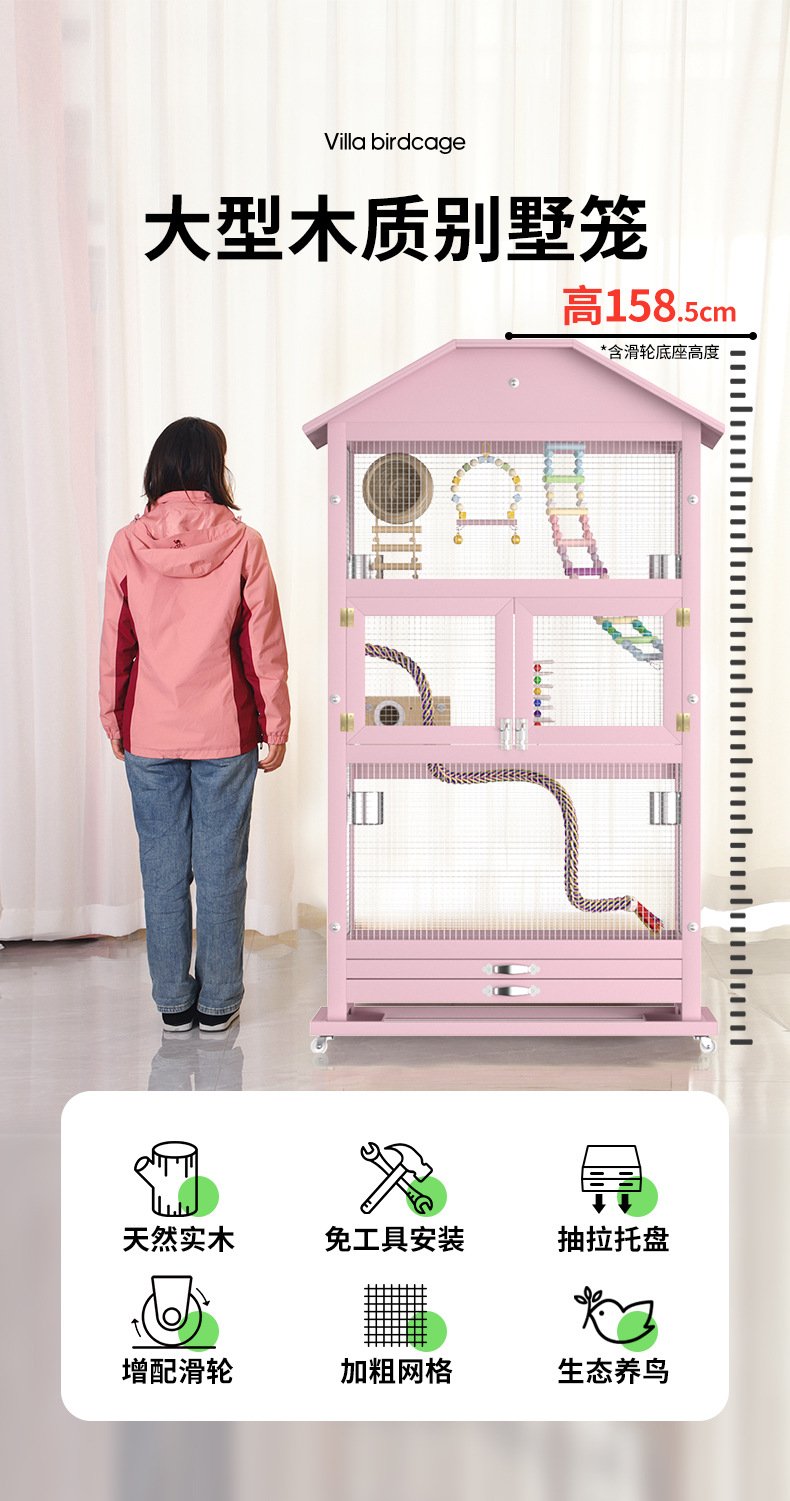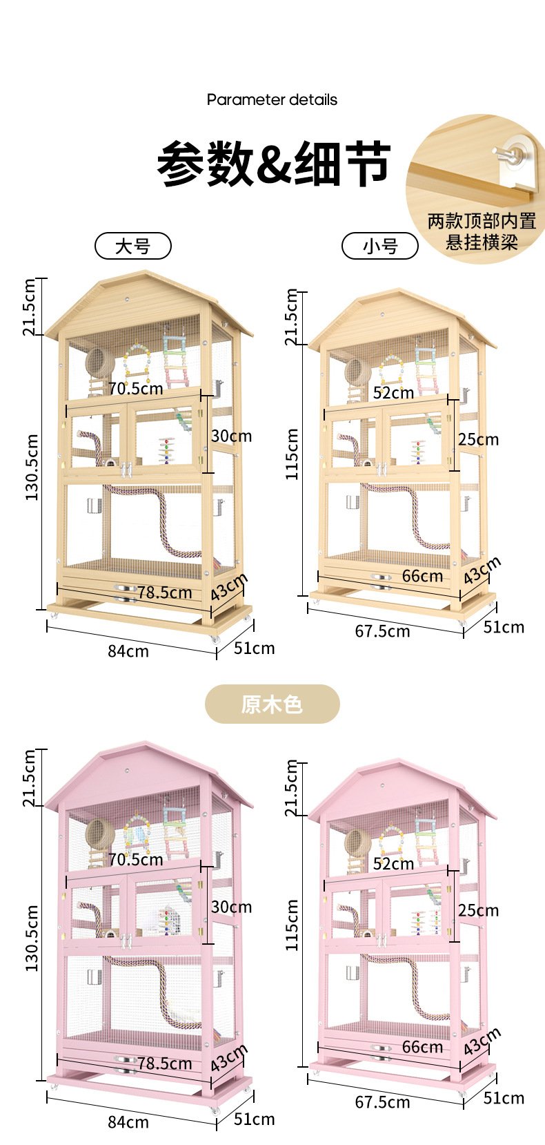 Parrot Cage Solid Wood Large Extra Large Peony Tiger Skin Myna Bird Cage Black Phoenix Bird Cage Luxury Villa Wholesale