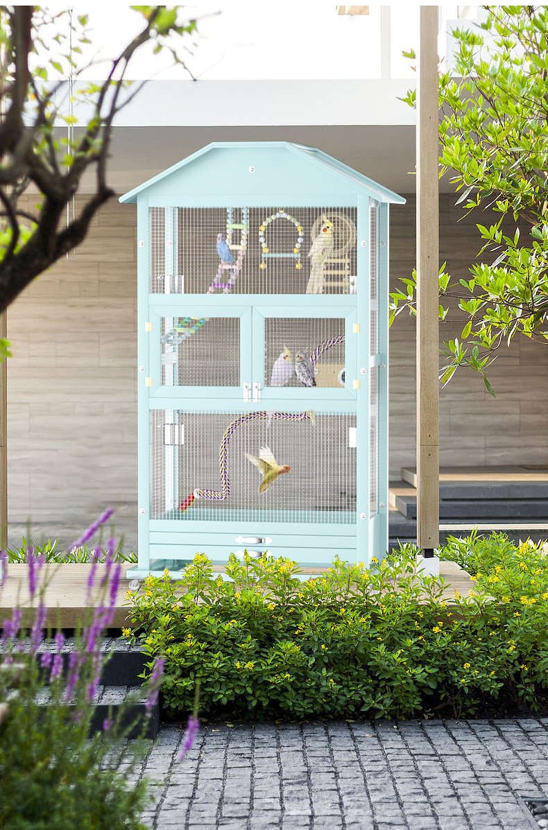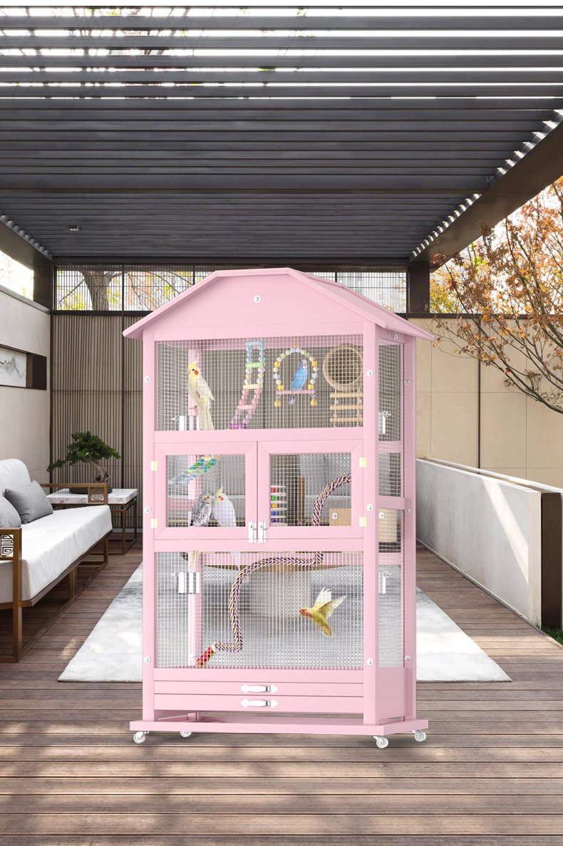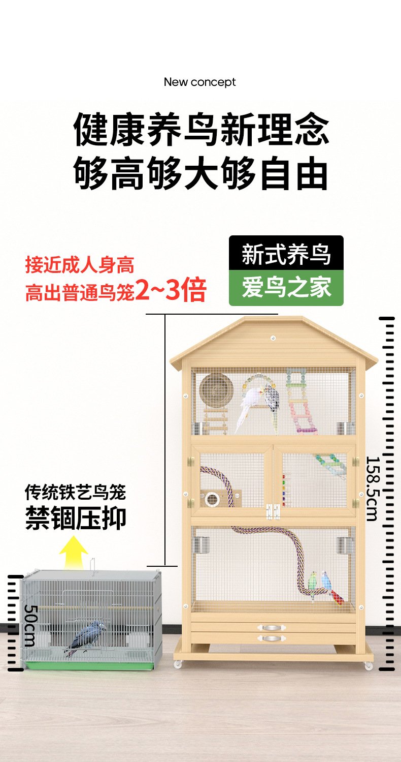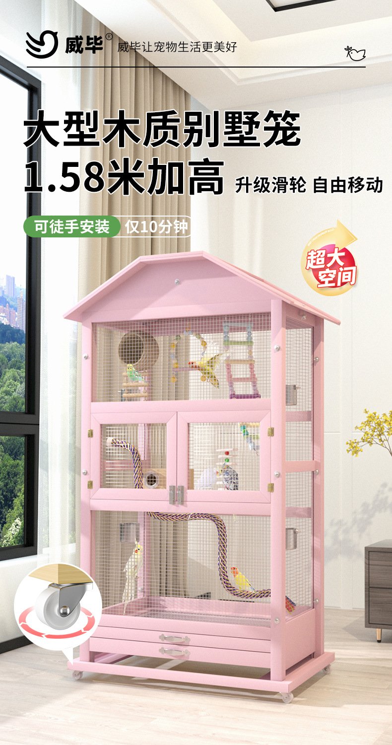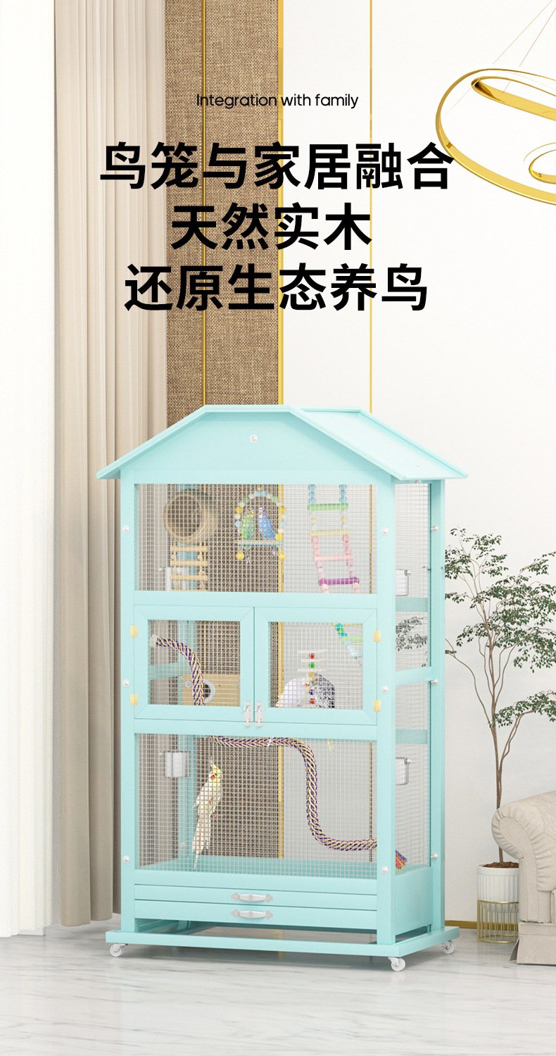 Parrot Cage Solid Wood Large Extra Large Peony Tiger Skin Myna Bird Cage Black Phoenix Bird Cage Luxury Villa Wholesale