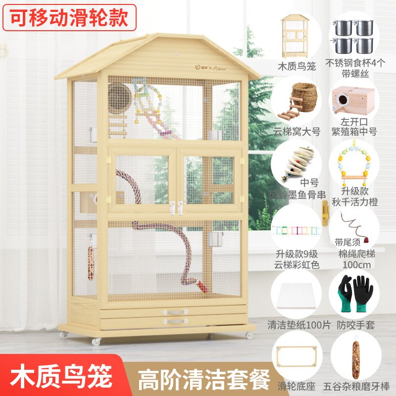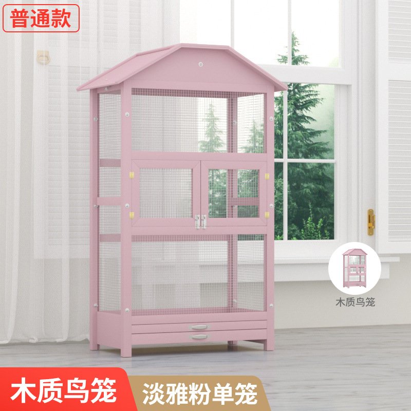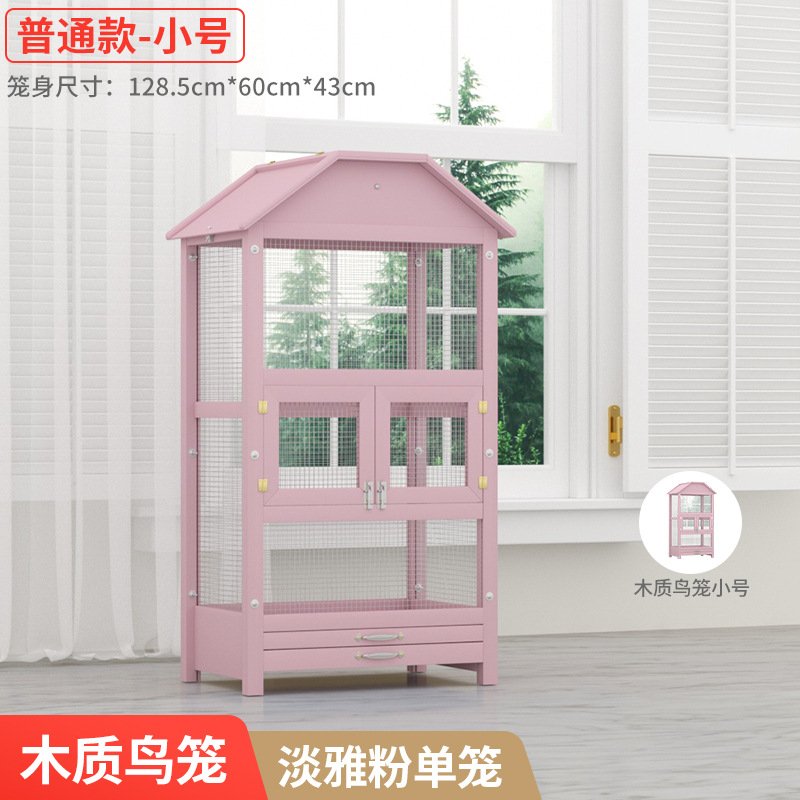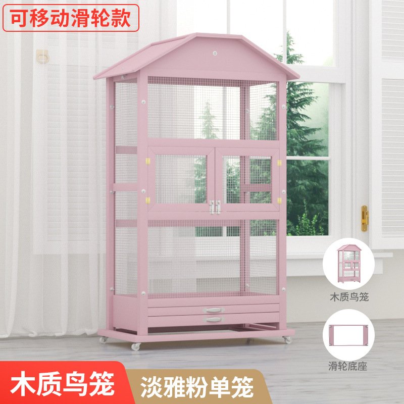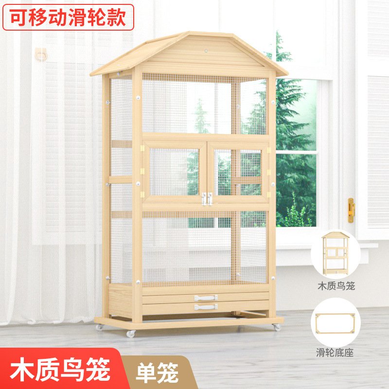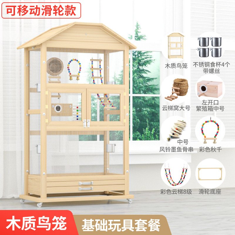 Parrot Cage Solid Wood Large Extra Large Peony Tiger Skin Myna Bird Cage Black Phoenix Bird Cage Luxury Villa Wholesale