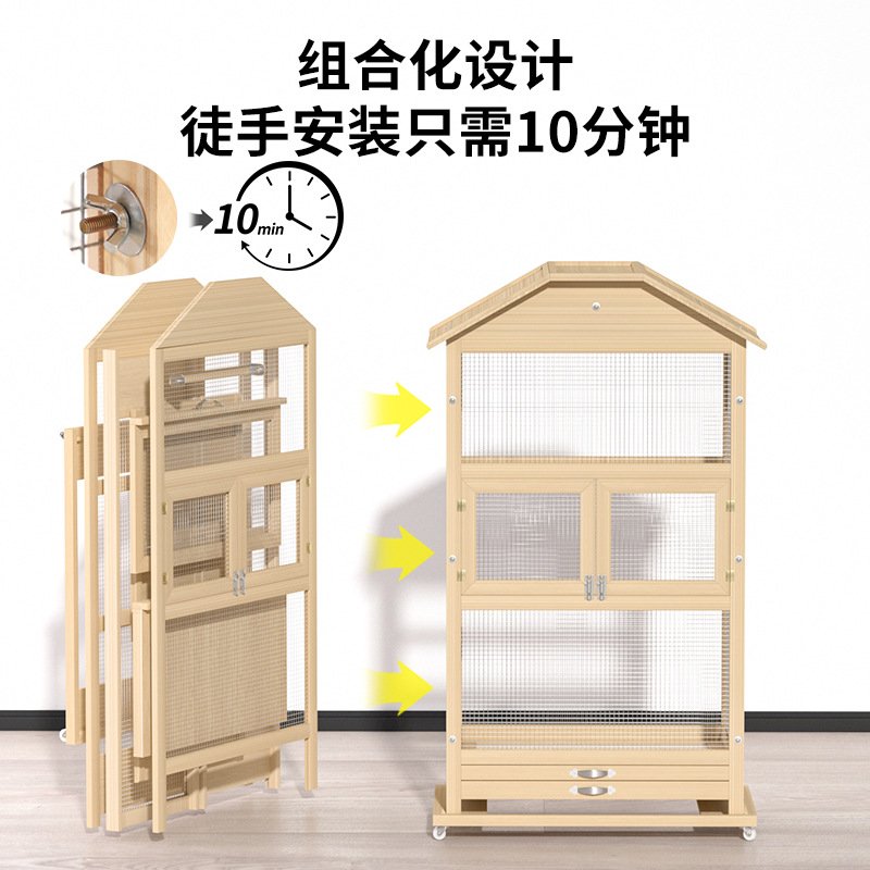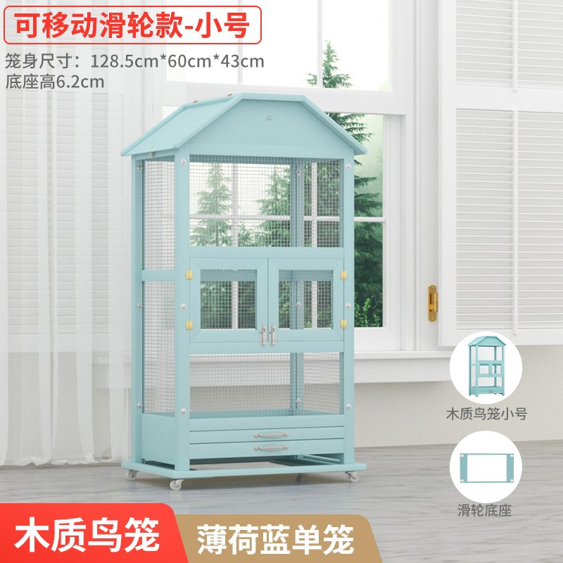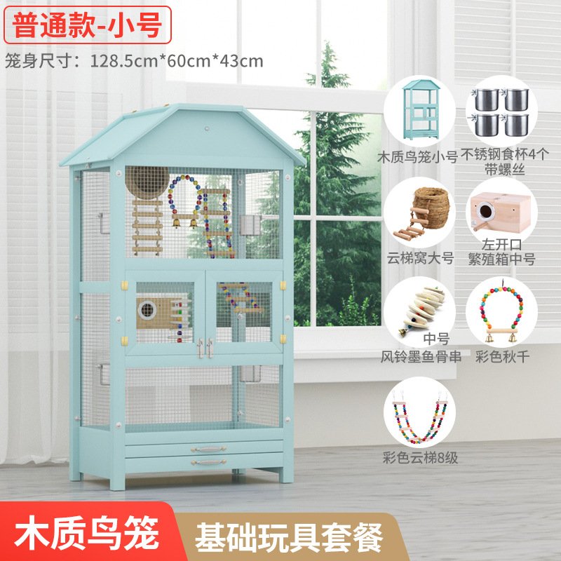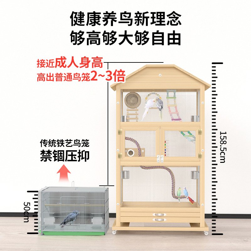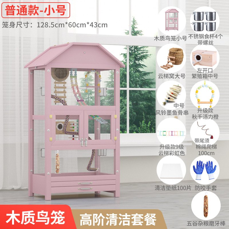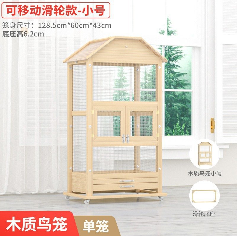 Parrot Cage Solid Wood Large Extra Large Peony Tiger Skin Myna Bird Cage Black Phoenix Bird Cage Luxury Villa Wholesale