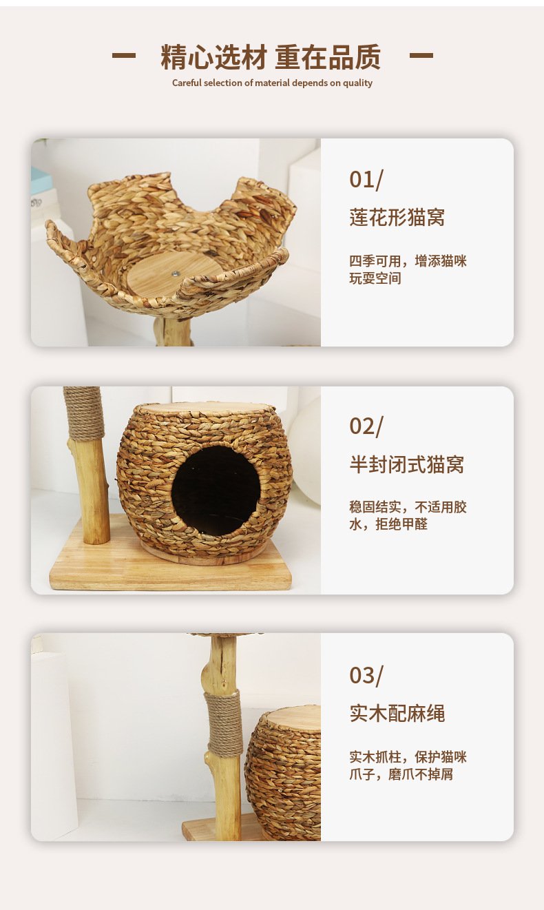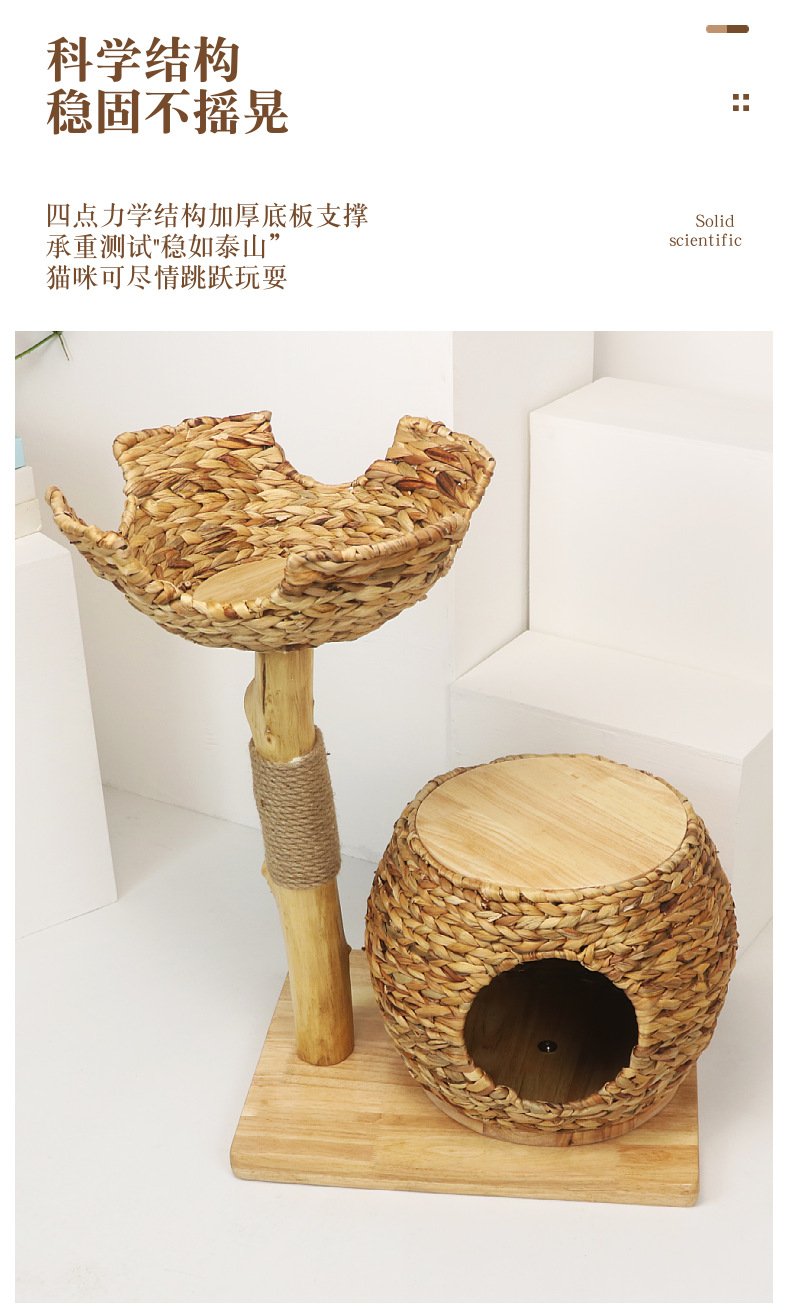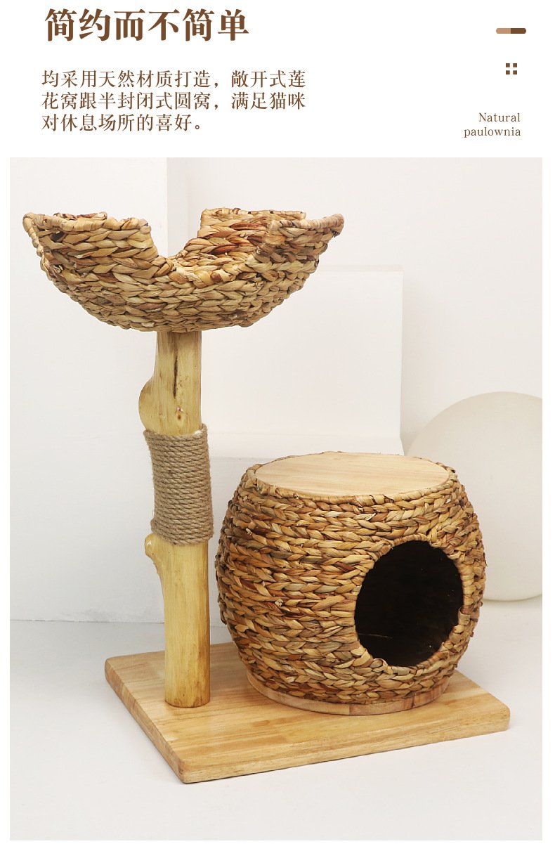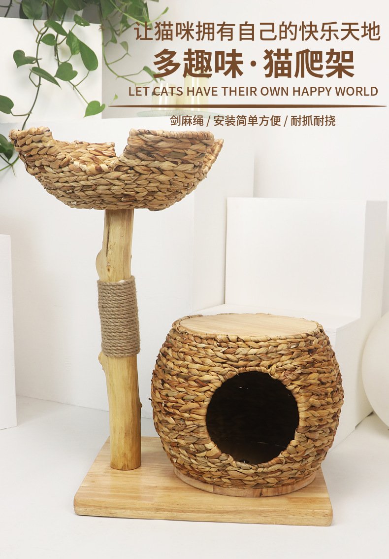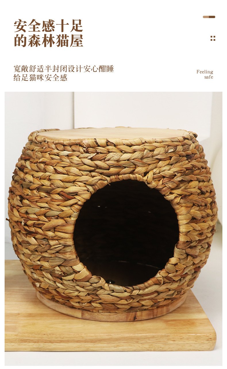 Luxury Solid Wood Straw Cat Nest Pet Nest Cat Room Cat Scratching Board Source Factory Stable Cat Villa Cat Climbing Frame