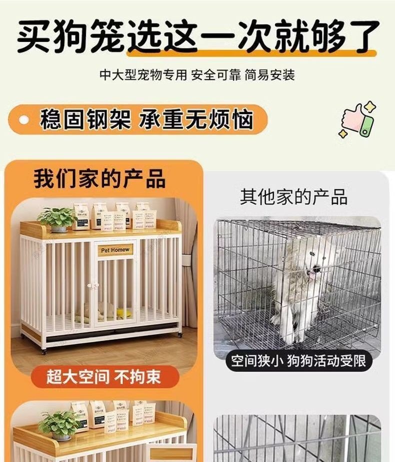 Dog Cage Pet Indoor Large, Medium And Small Dog With Toilet Bold And Reinforced Luxury Dog Villa Dog House Home Dog Kennel